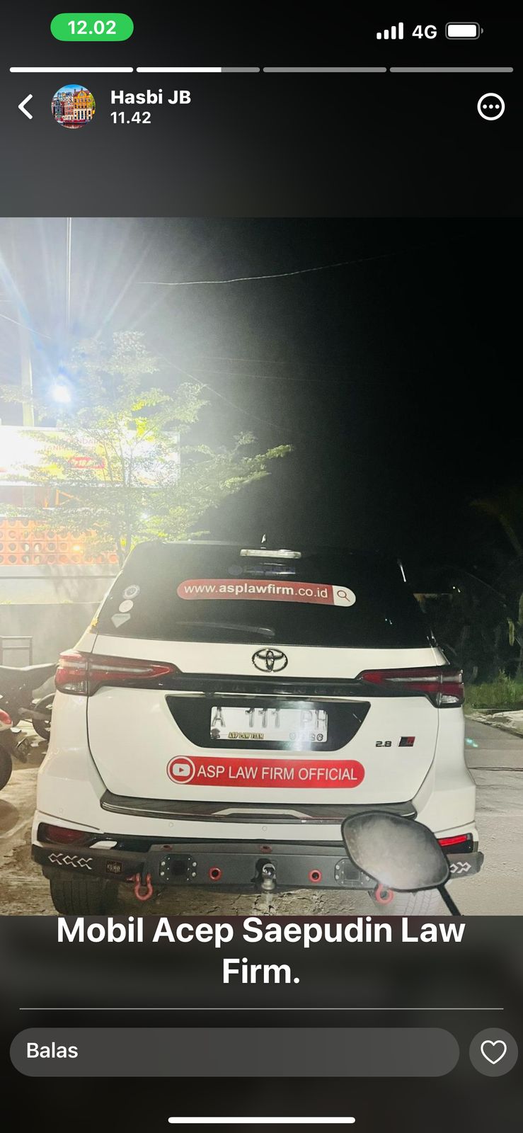 Acep Saepudin Pengacara Kondang Kelahiran lebak tersinggung atas postingan setatus WhatsApp Bupati Lebak ( Hasbi ) yang memampang mobil milik Acep dengan kata-kata " Mobil Acep Saepudin Law Firm. Cakep Kan Plat Nomornya ? Ka Acep, Saberaha Eta Pajakna " di story sang Bupati yang di posting pada 4 Maret 2025.
